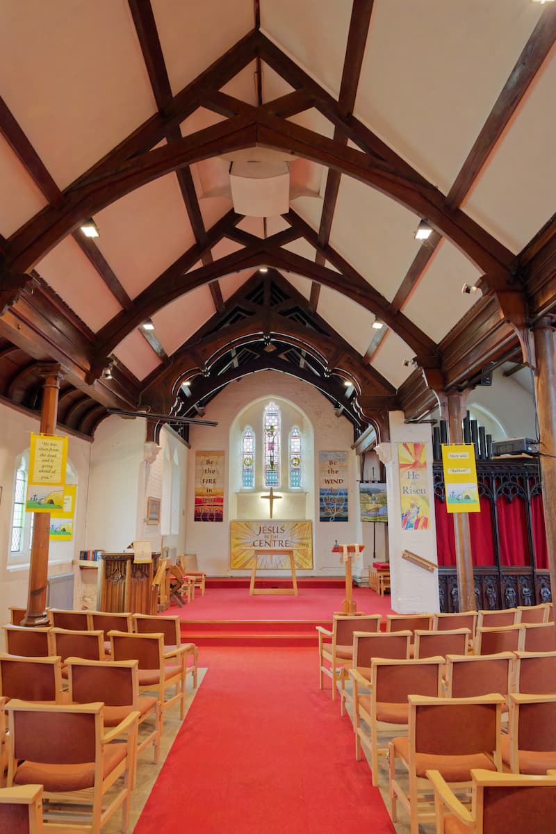 There has been a church here since Saxon times. The oldest part of the present building is the tower, thought to be 14th Century. A south aisle was added in mid-Victorian times and the whole of the nave, chancel and south aisle was rebuilt about 1870. Changes have been made since: a vestry (now the church office) and a sacristy were added in the 1930s, and the interior was reorganised in the 1990s with the removal of pews and the fitting of carpets and chairs. An adjacent ‘Meeting Place’, with toilets and catering facilities was completed in 2020.